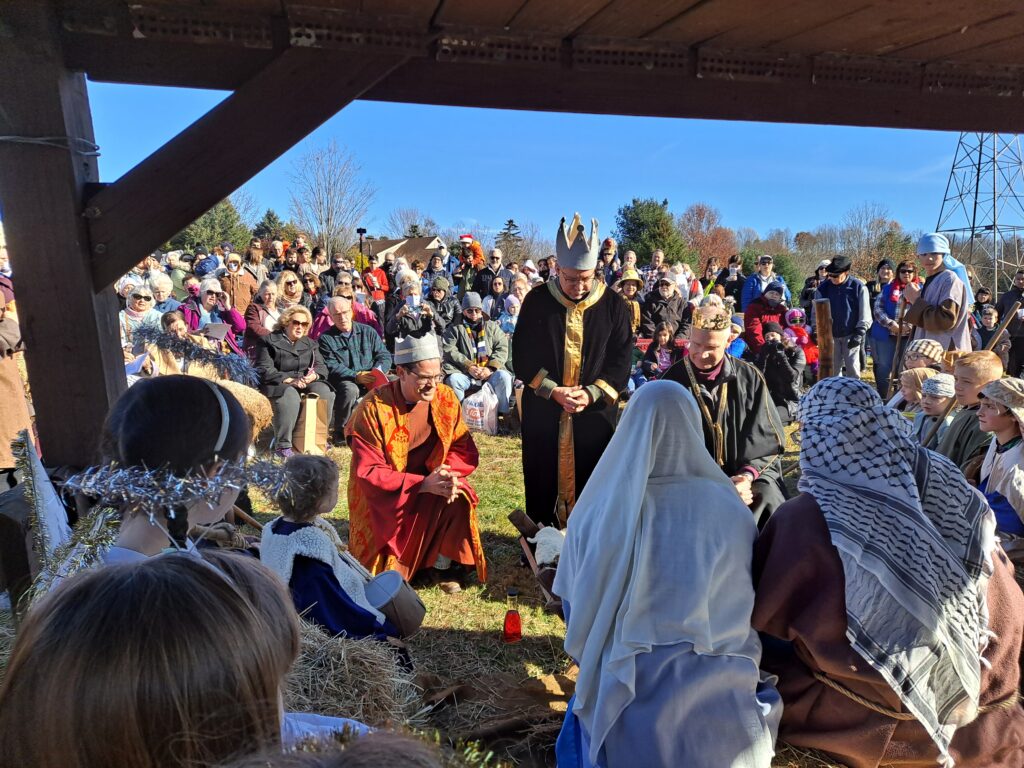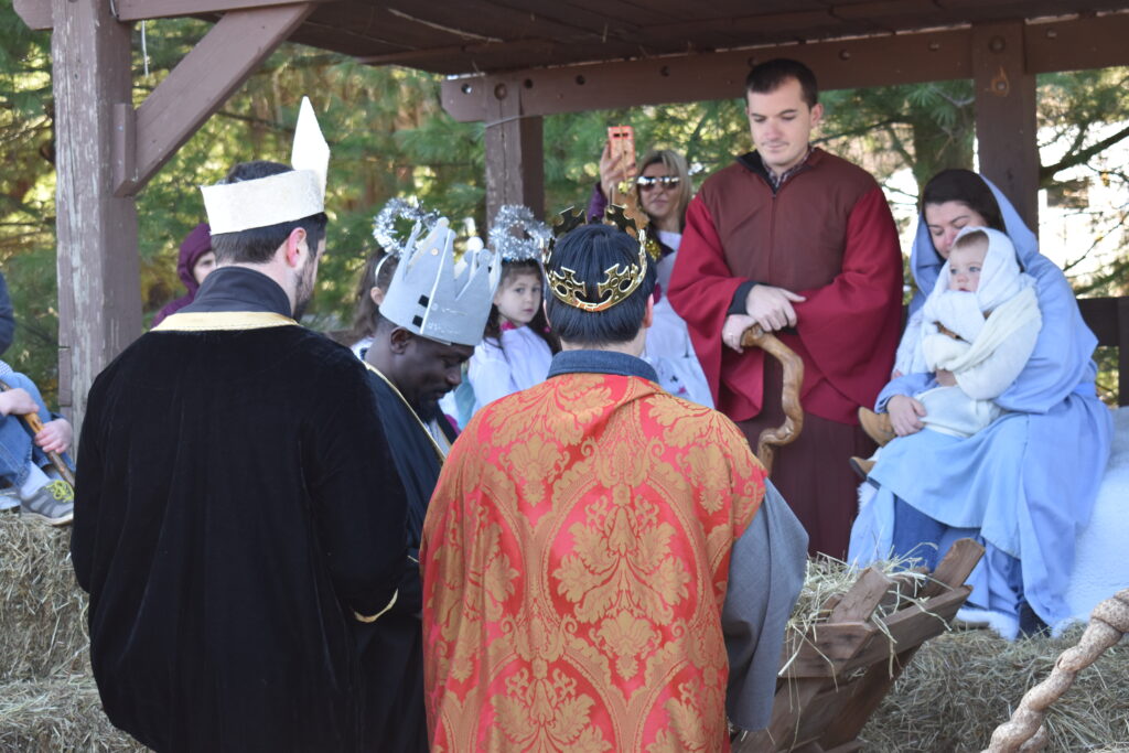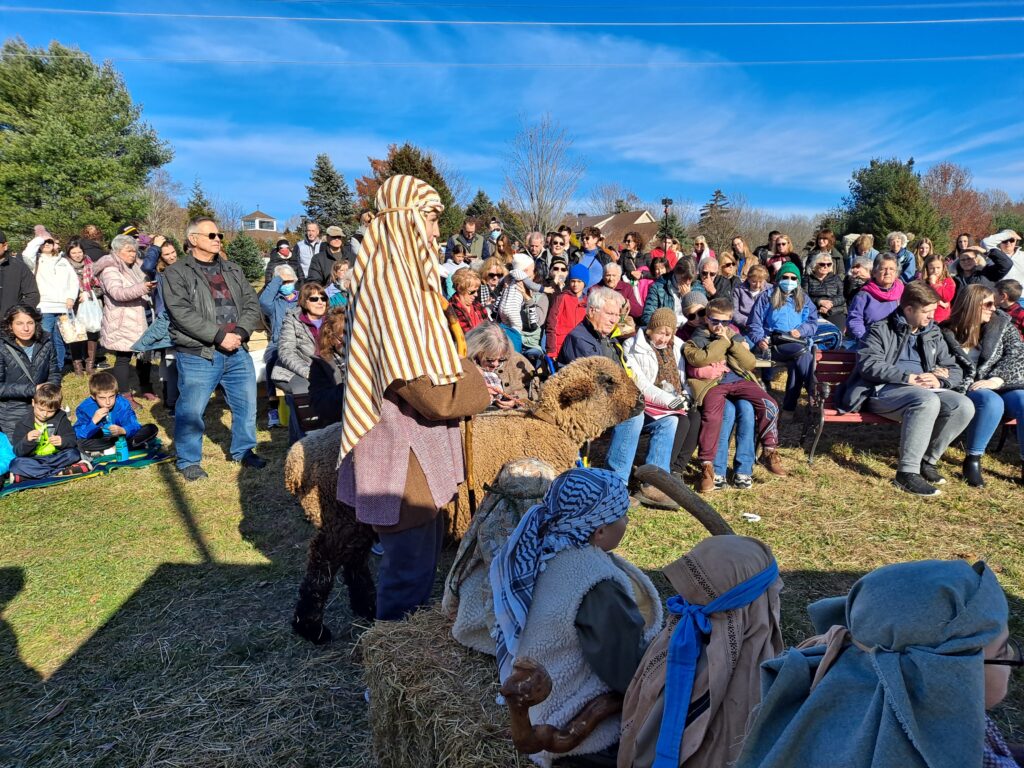 A special highlight each year is the Living Crèche, which takes place twice during the day. A procession of angels, shepherds and kings accompany Mary and Joseph with their newborn baby to the hay-lined manger where sheep and goats are grazing. Musicians lead the crowd in singing Christmas songs and the account of the birth of Jesus is read aloud. Santa makes an appearance, adoring the Christ Child and reminds those present that Jesus is the reason for the celebration of Christmas. The procession begins at 10:30 a.m. and 12:30 p.m.
